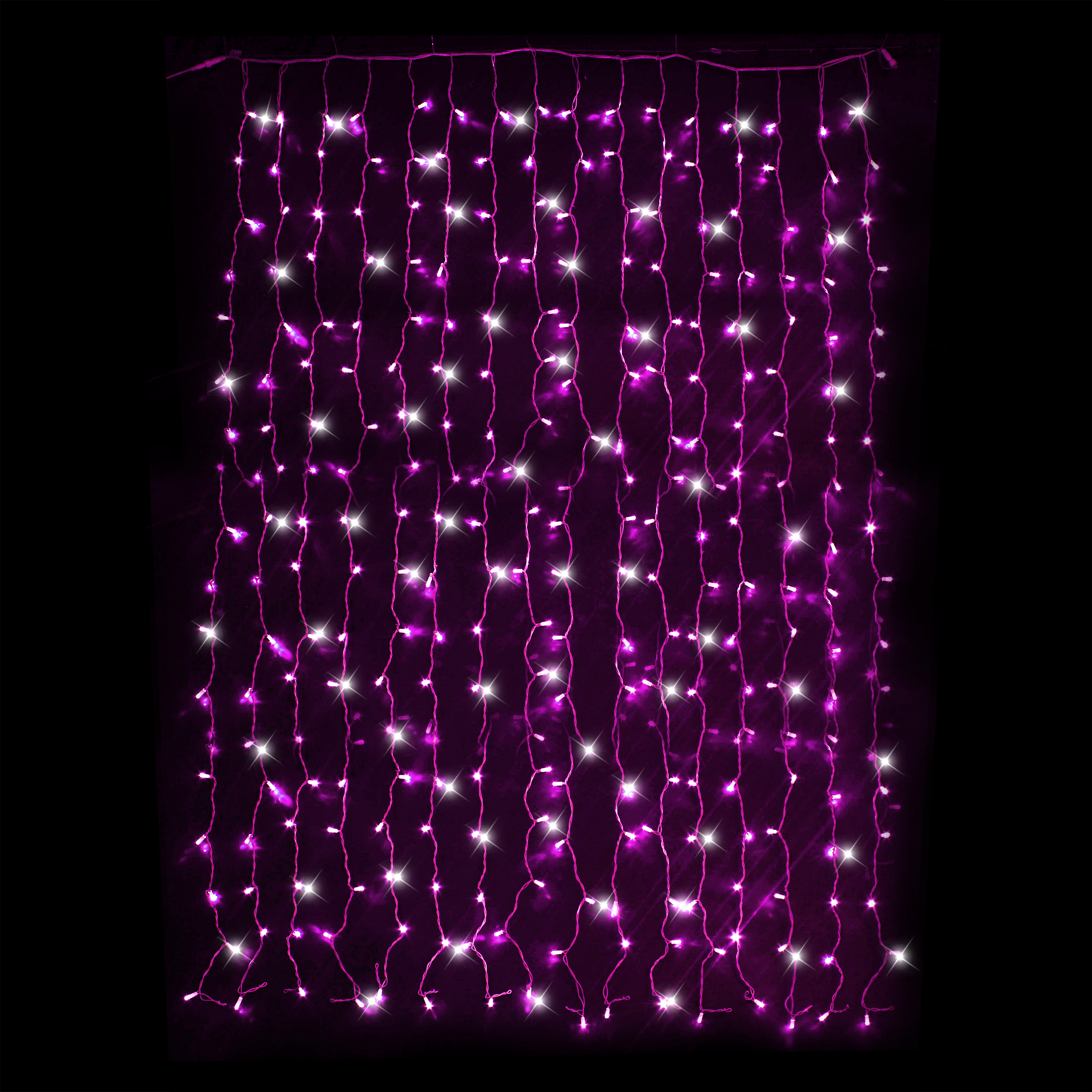 Curtainlight – 240 LED – 12 drops – L2mxH1.5m – white cable Pink Flashing White
